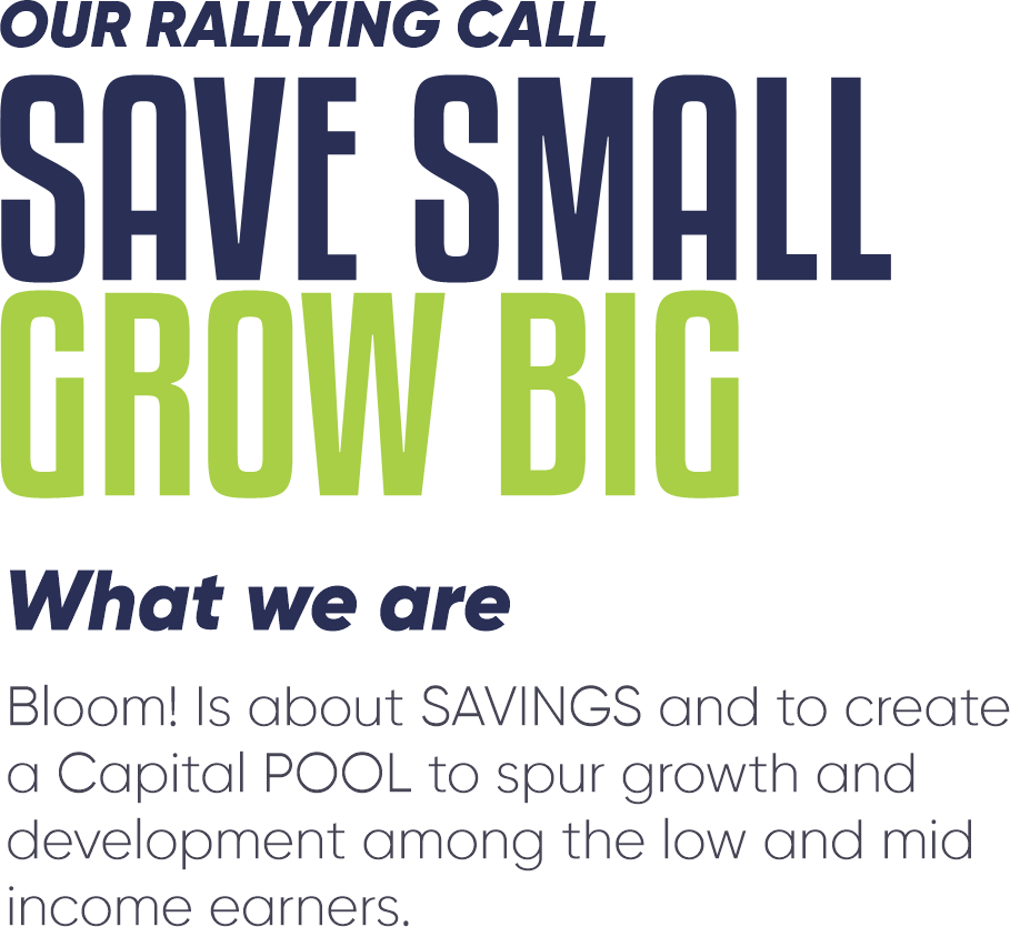 Our innovative technologies and marketing approach will inspire a Savings culture among the low and mid income earners. As well as provide easy access to tailored LOAN products.